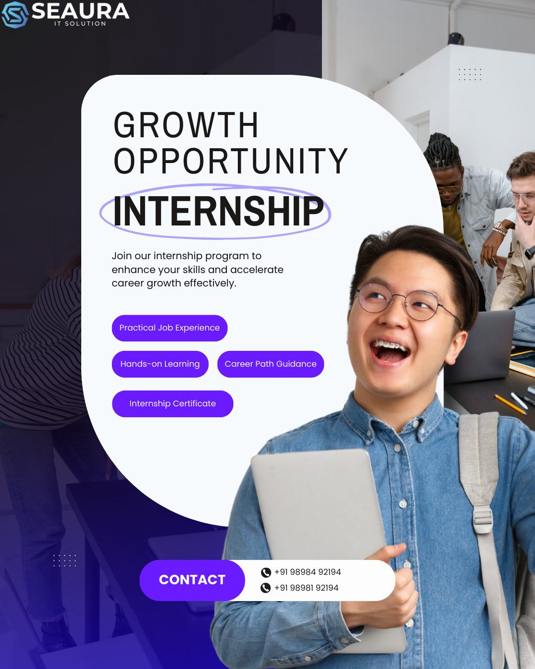At Seaura IT Solution, we are your one-stop partner for cutting-edge web and mobile applications, stunning graphic design and we also provide internship opportunities for aspiring developers and designers.